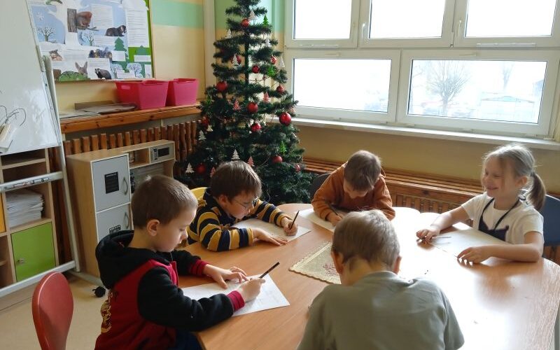 W atmosferze oczekiwania na Święta Bożego Narodzenia uczniowie klas pierwszych pisali listy po śladzie do Mikołaja, w których wyrażali prośby dotyczące prezentów. Swoje karty własnoręcznie ozdabiali kolorowymi obrazkami i śnieżynkami, zwijali w rulonik i związywali wstążką. Tak powstałe listy były przekazywane rodzicom w domu. Podczas pisania zwracano uwagę na estetykęi na to, jak zbudowany jest list. Dzieci mają nadzieję, że chociaż niektóre z ich marzeń uda się spełnić. Na zdjęciu...Read More