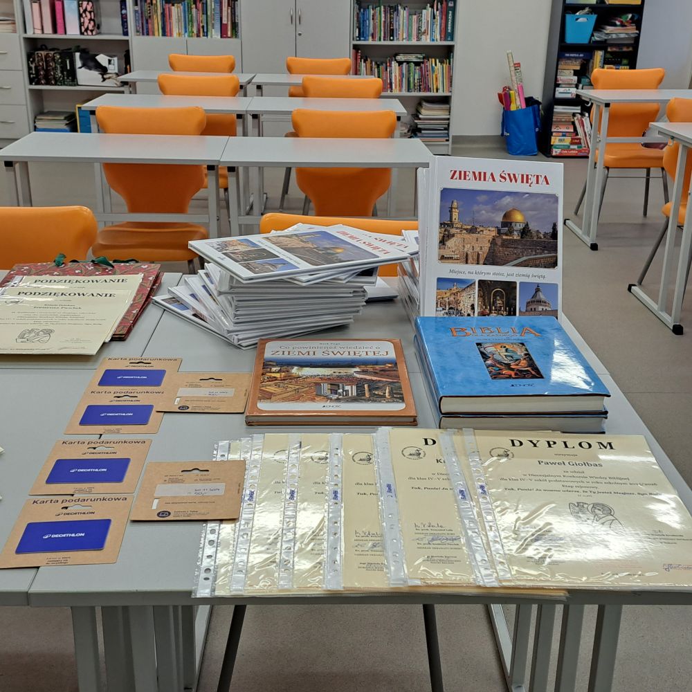 Wszyscy uczestnicy konkursu otrzymali dyplomy oraz książkę: „Ziemia Święta” .