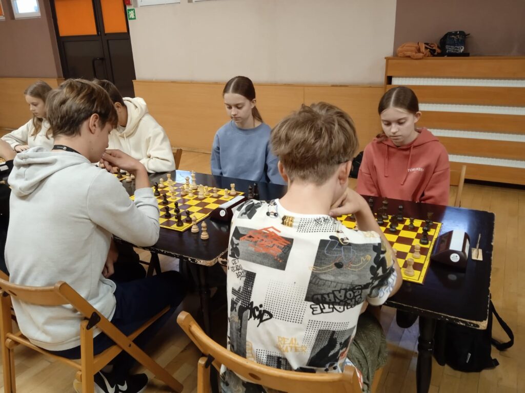Z radością informujemy, że nasza drużyna w składzie: Alicja Skoneczna z kl. 7 b, Emilia Skoneczna z kl. 7 b, Hanna Sobczyk z kl. 8 a oraz Piotr Wyrobek z kl. 8 s, zajęła II miejsce w finale powiatowym Igrzysk Młodzieży w Szachach, który odbył się 24 października w klubie „Wisus” w Żorach. Gratulujemy zawodnikom!