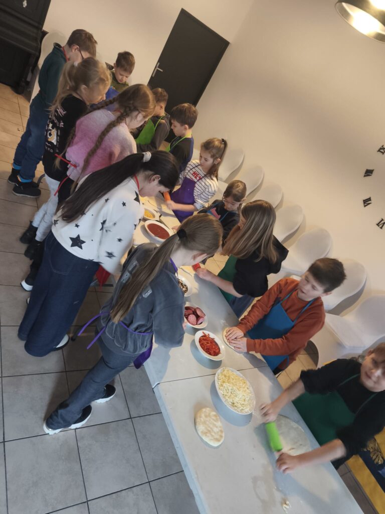 9 lutego, w Międzynarodowy Dzień Pizzy, uczniowie klasy 3a uczcili to wyjątkowe święto, udając się do pizzerii „Gastrofaza”. Podczas wizyty wzięli udział w warsztatach samodzielnego robienia pizzy, co okazało się świetną zabawą i niezapomnianym doświadczeniem. Organizowane przez panią Dagmarę liczne zabawy sprawiły, że dzieci były bardzo zaangażowane i radośnie spędzały czas. Dodatkowo każdy miał okazję plastycznie ozdobić swoje pudełko do pizzy. Wykonane pizze były nie tylko piękne i cieszyły oko, ale także równie smaczne.