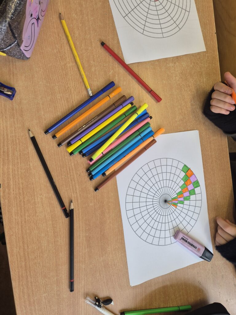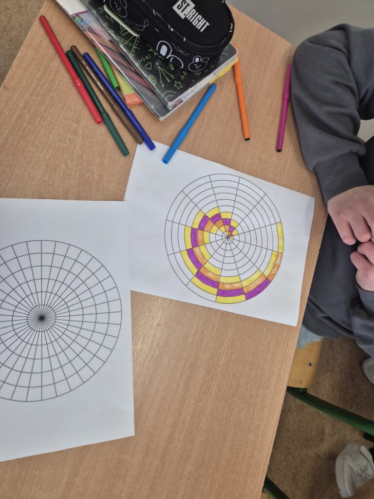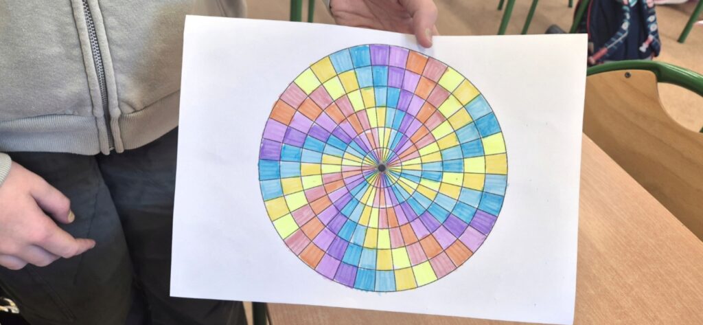 Podczas lekcji uczniowie wyszukiwali przykłady występowania ciągu Fibonacciego w przyrodzie, architekturze i sztuce. Zajęcia miały również charakter kreatywny – uczniowie wykonywali prace plastyczne inspirowane spiralą Fibonacciego. Lekcja pozwoliła dostrzec, że matematyka to nie tylko liczby i obliczenia, ale także piękno, harmonia i obecność w życiu codziennym.