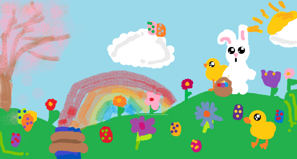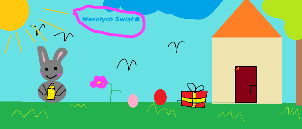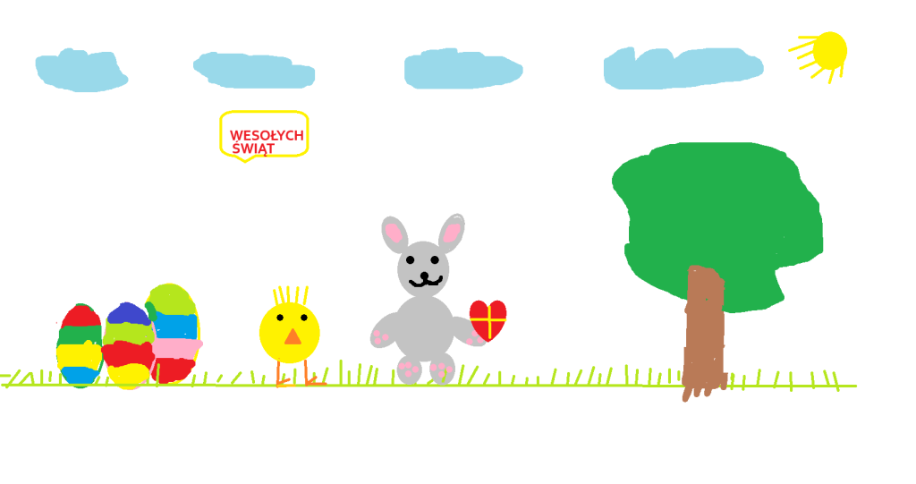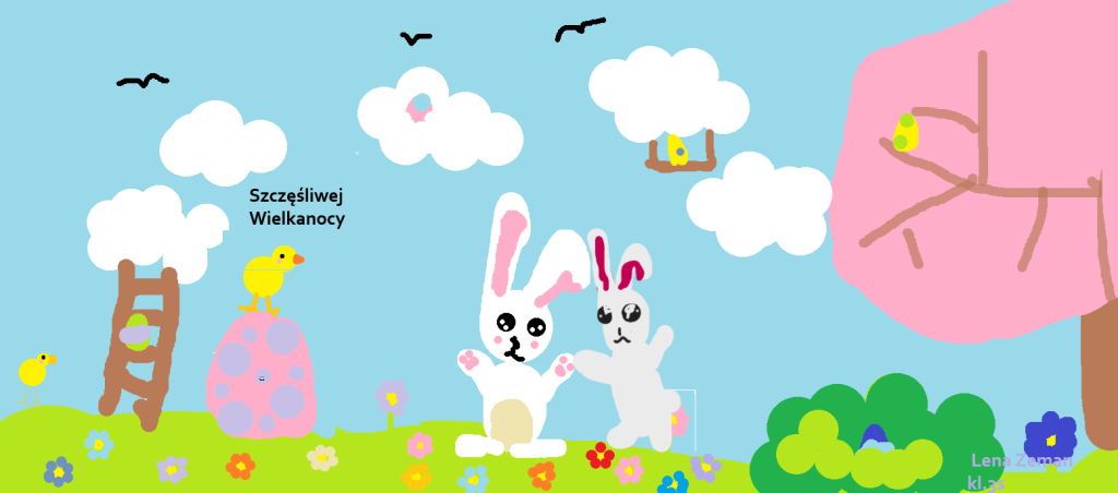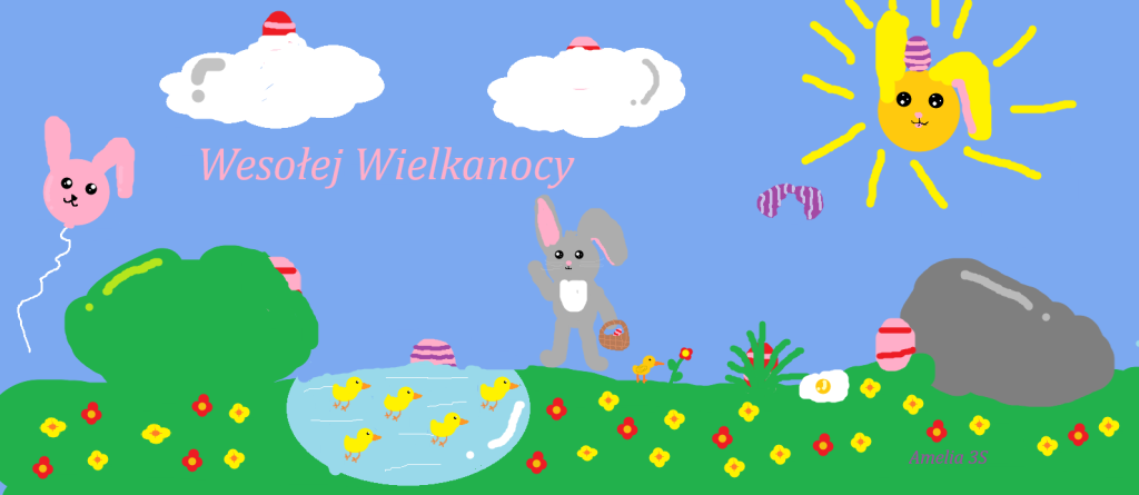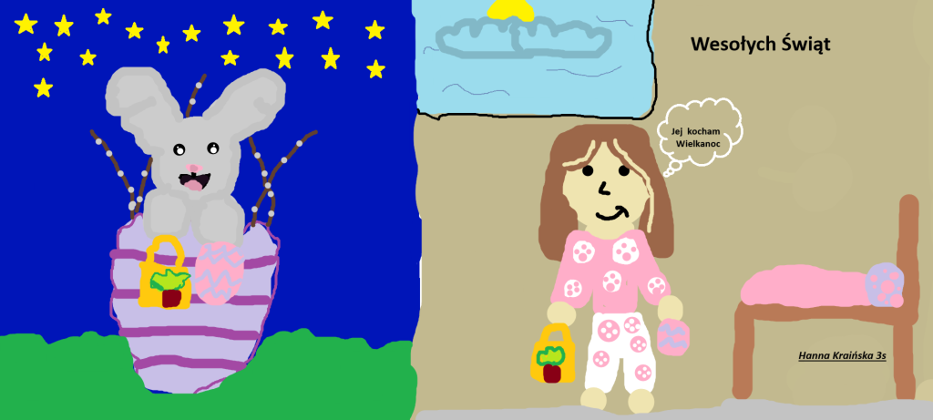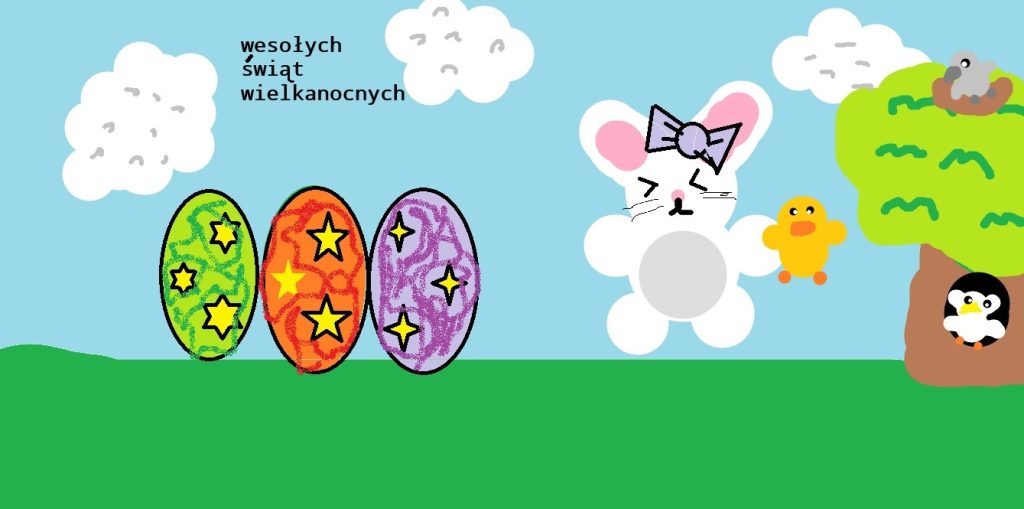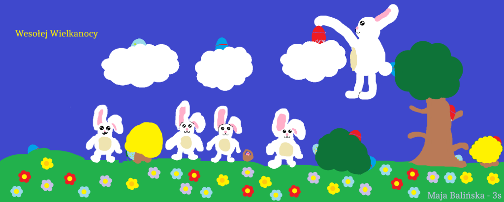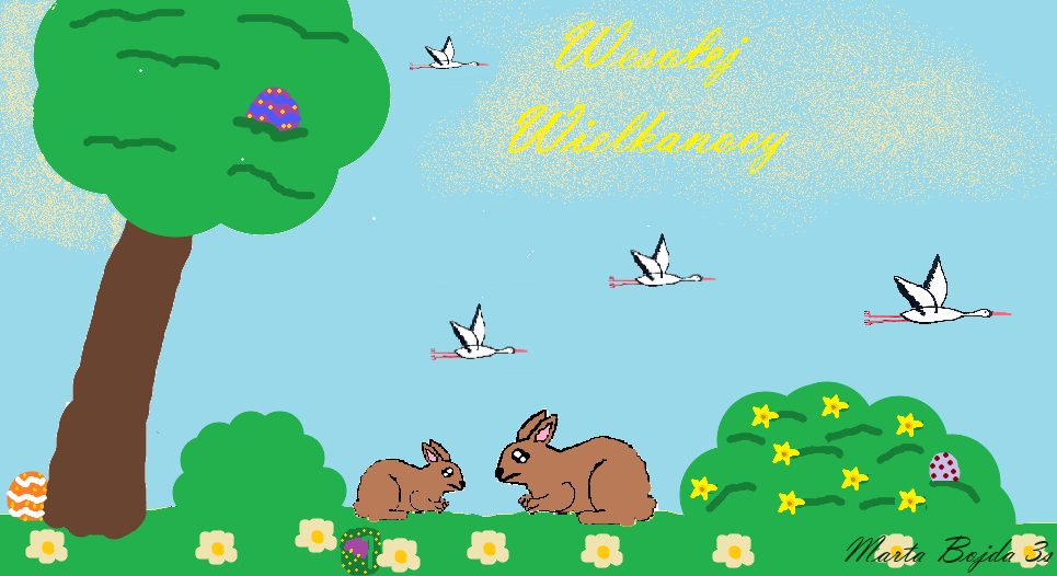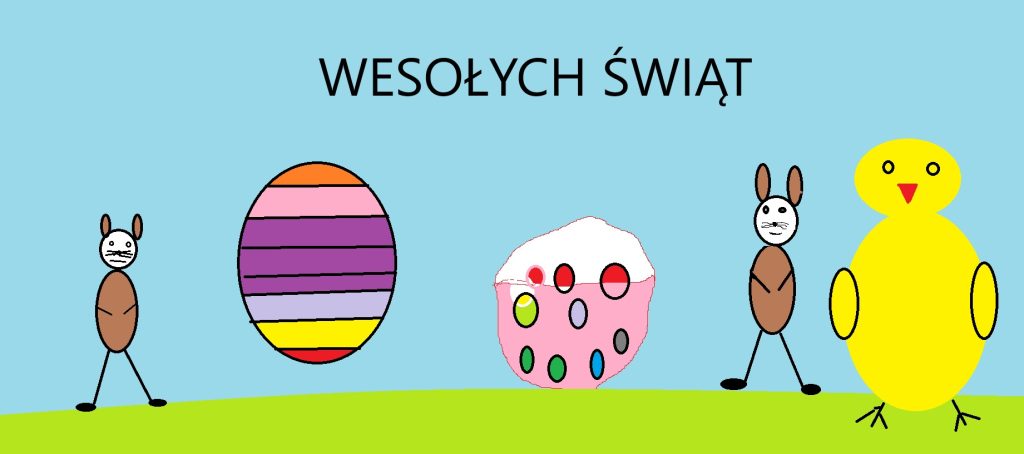 W naszej szkole odbył się konkurs informatyczny dla uczniów klas 1–3 pt. „Malowanie na ekranie”. Dzieci miały za zadanie zaprojektować kartkę świąteczną – wielkanocną w programie graficznym Paint.