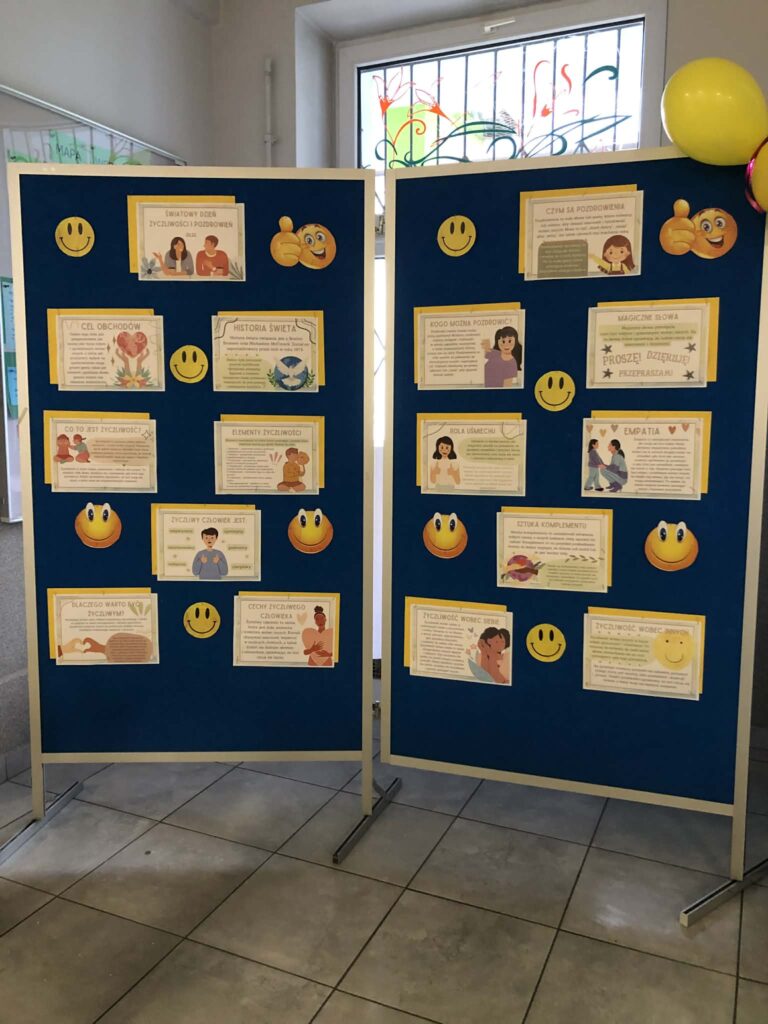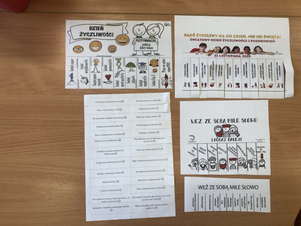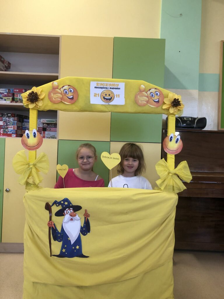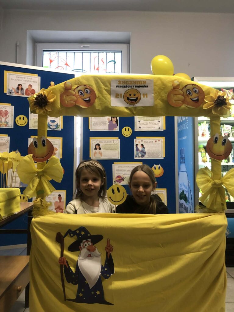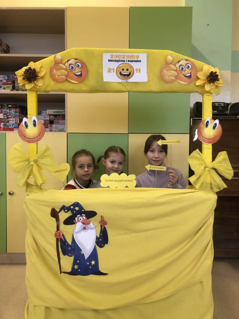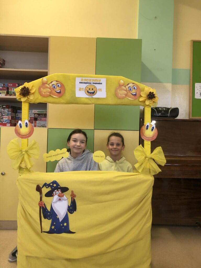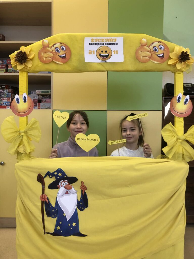 21 listopada to Światowy Dzień Życzliwości. Przez szkolny radiowęzeł mogliśmy wysłuchać historii obchodów tego dnia, który ma swój początek w Stanach Zjednoczonych. Prężnie działała „Życzliwa Poczta”. Każdy miał możliwość napisania życzeń, pozdrowień, miłych słów wybranej osobie. Korytarze wypełniły się kartkami z myślami na temat życzliwości, serdeczności, które można było przekazać dalej. Kolor żółty – oznaczający optymizm i radość dominował w tym dniu. Była również  wyjątkowa Fotobudka Życzliwości:) w której dzieci mogły zrobić sobie pamiątkowe zdjęcia:)