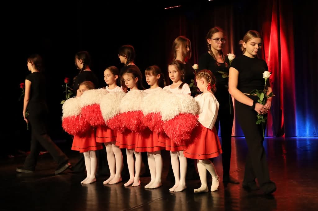 We wtorek 18.11.2025 odbyła się Miejska Gala Patriotyczna, która była podsumowaniem Powiatowych Konkursów Poezji i Piosenki Patriotycznej z cyklu „Patriotyzm na co dzień i od święta”. W gali uczestniczyły uczennice z klasy 2s, 8a oraz 6b, które tańcem przygotowanym przez panią Monikę Jakubską rozpoczęły uroczystość. Podczas gali zaprezentowali się laureaci z żorskich szkół. W konkursach poezji i piosenki brali udział również nasi uczniowie. W konkursie piosenki uczennice naszej szkoły uzyskały wyróżnienie