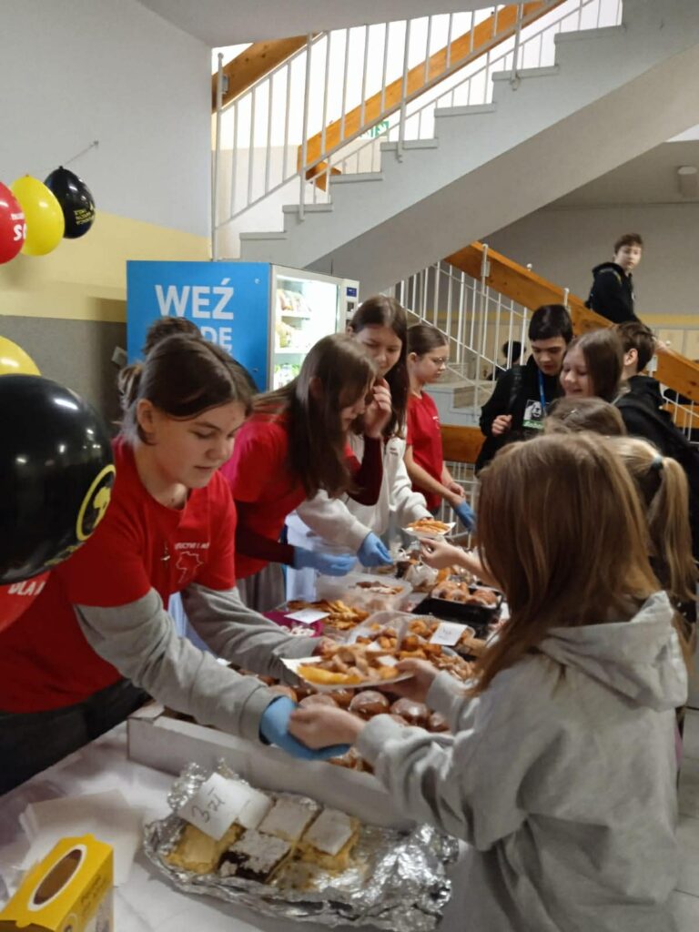 Serdecznie dziękujemy wszystkim uczniom, pracownikom szkoły oraz rodzicom, którzy wsparli akcję- czy to piekąc pączki i inne wypieki, czy kupując je z myślą o szczytnym celu. Dziękujemy piekarni Rehlis i Cukierni Król, które podarowały nam pączki. Kolejny raz pokazaliśmy, że razem, możemy więcej!