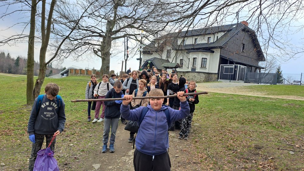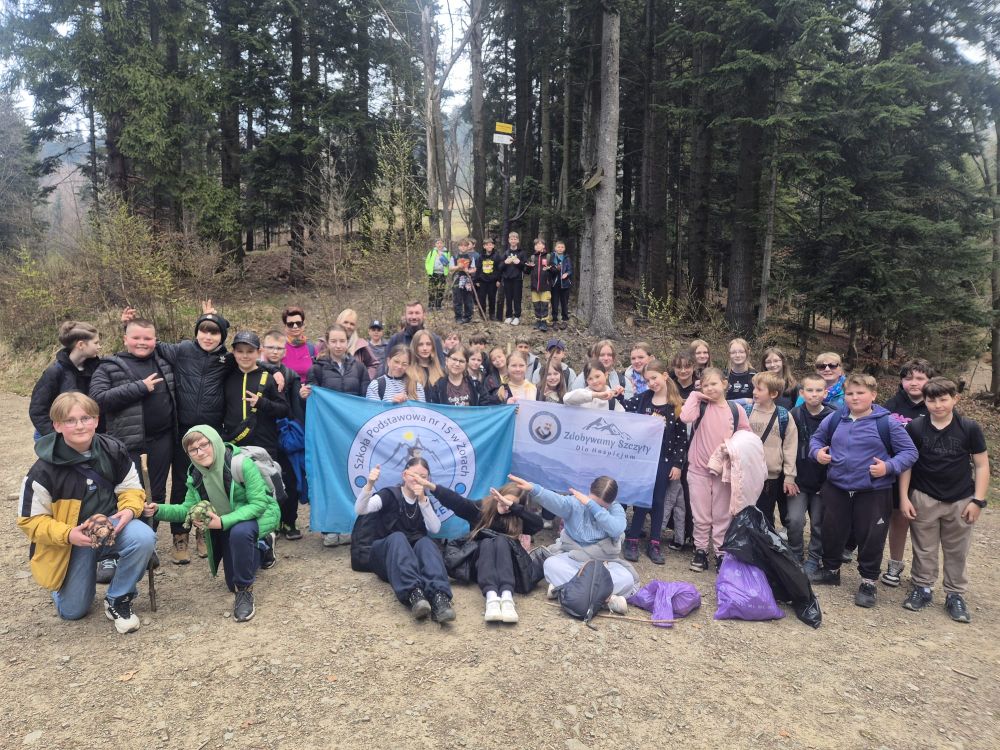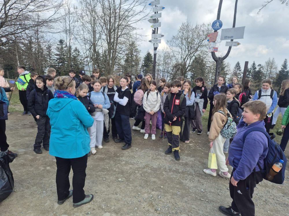 Rajd górski był połączony z obchodami zbliżającego się Dnia Ziemi. Uczniowie w czasie całej wędrówki zbierali śmieci na szlaku.