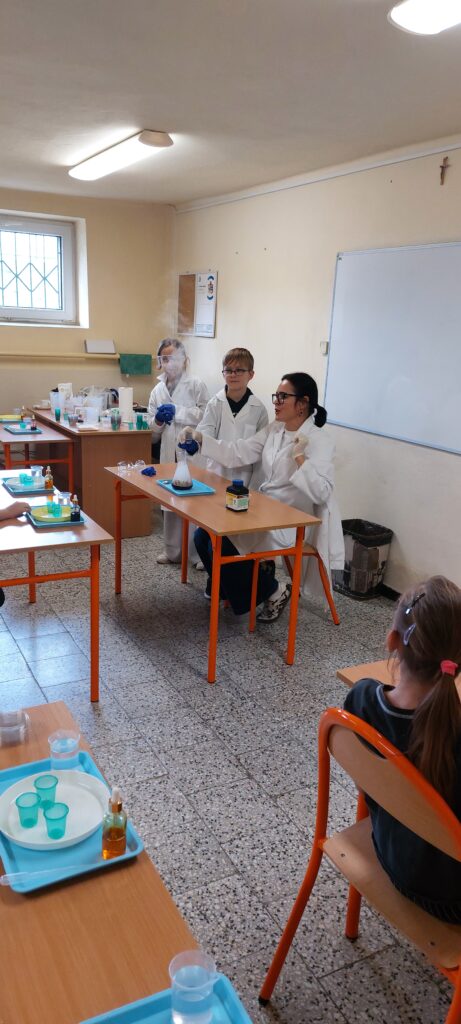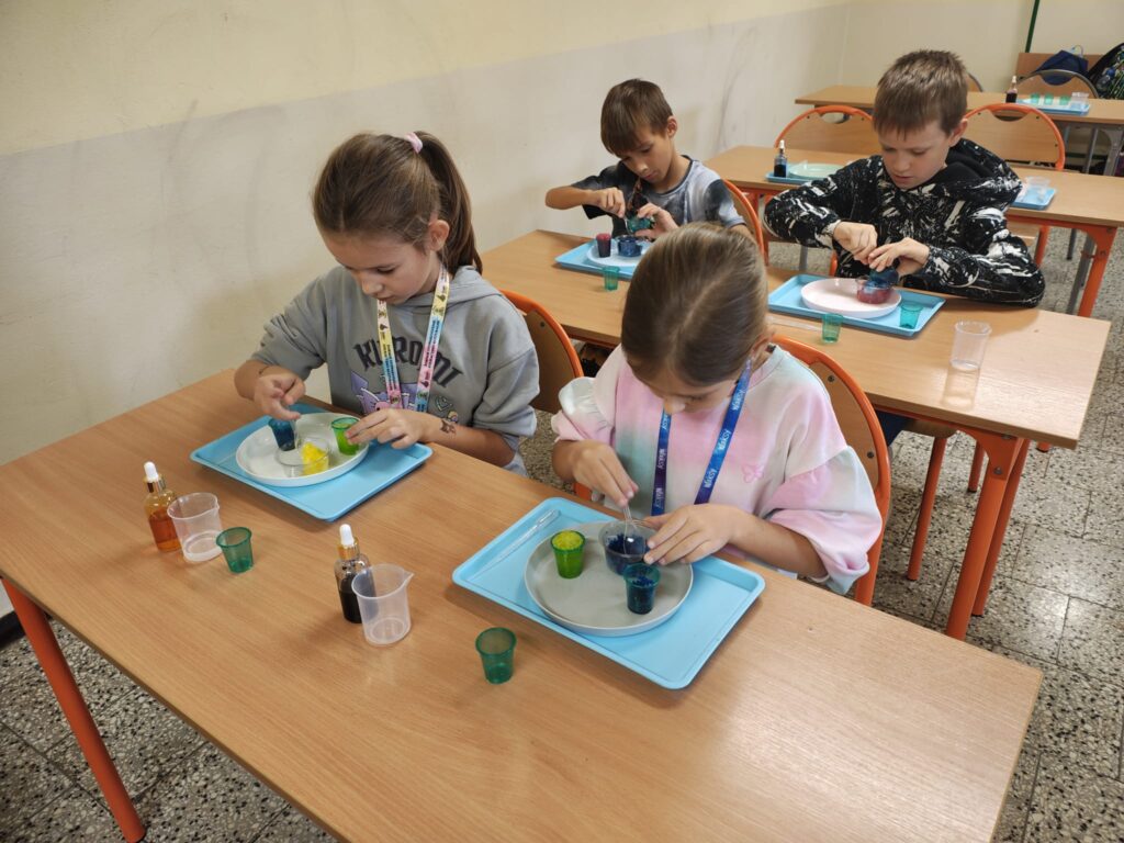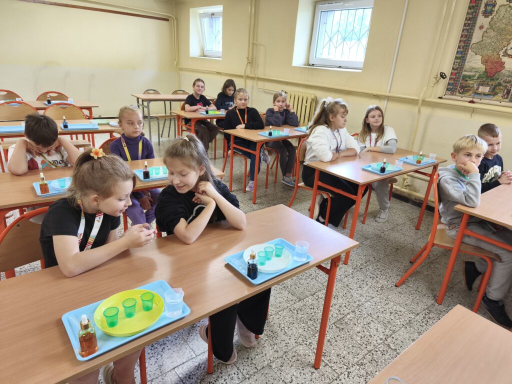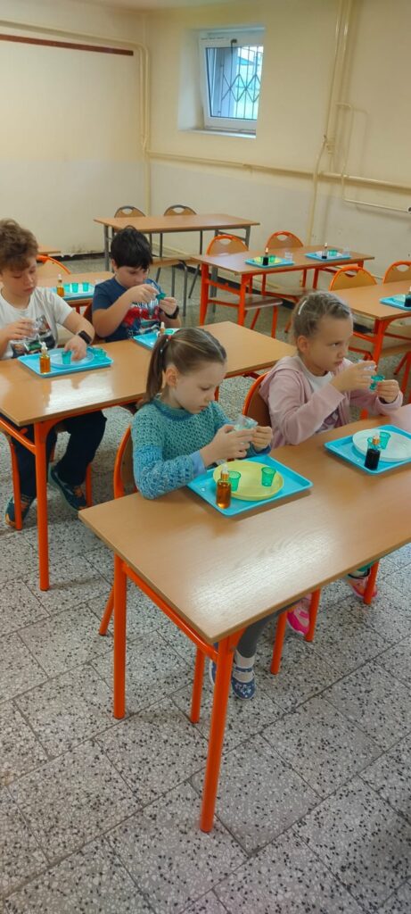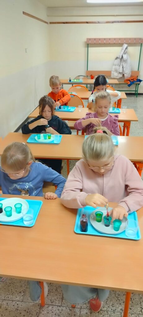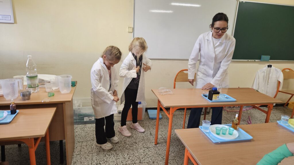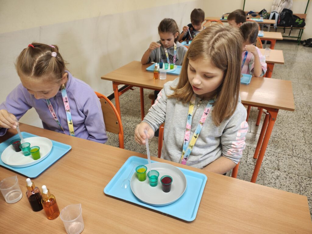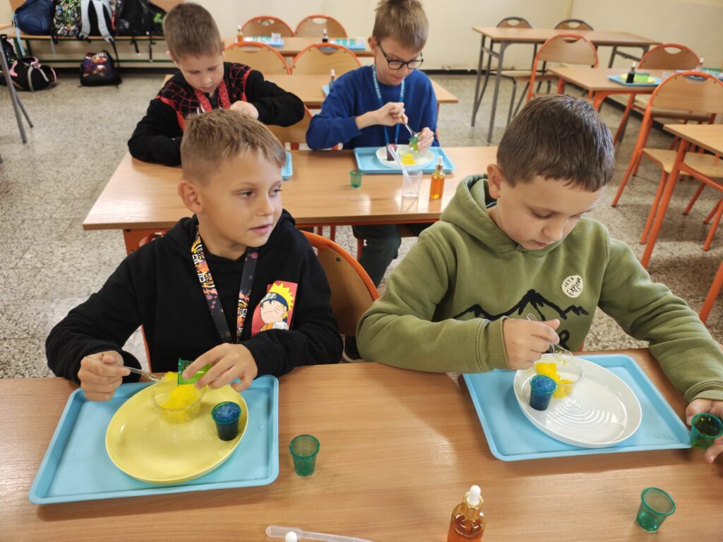 W dniu 8 października 2025 r. odbyły się warsztaty naukowe w ramach cyklu Laboratorium Małego Chemika, w których udział wzięli uczniowie klas I–III.