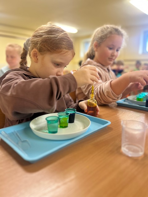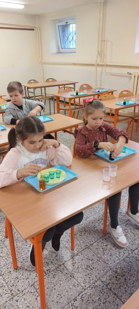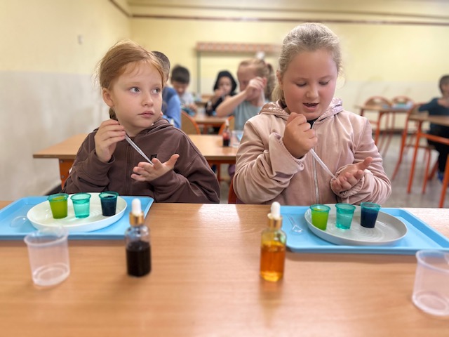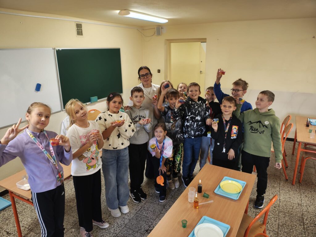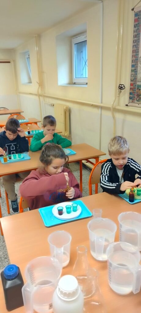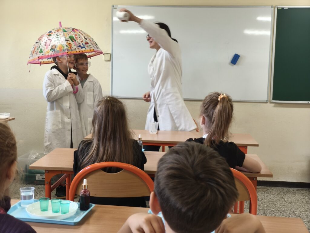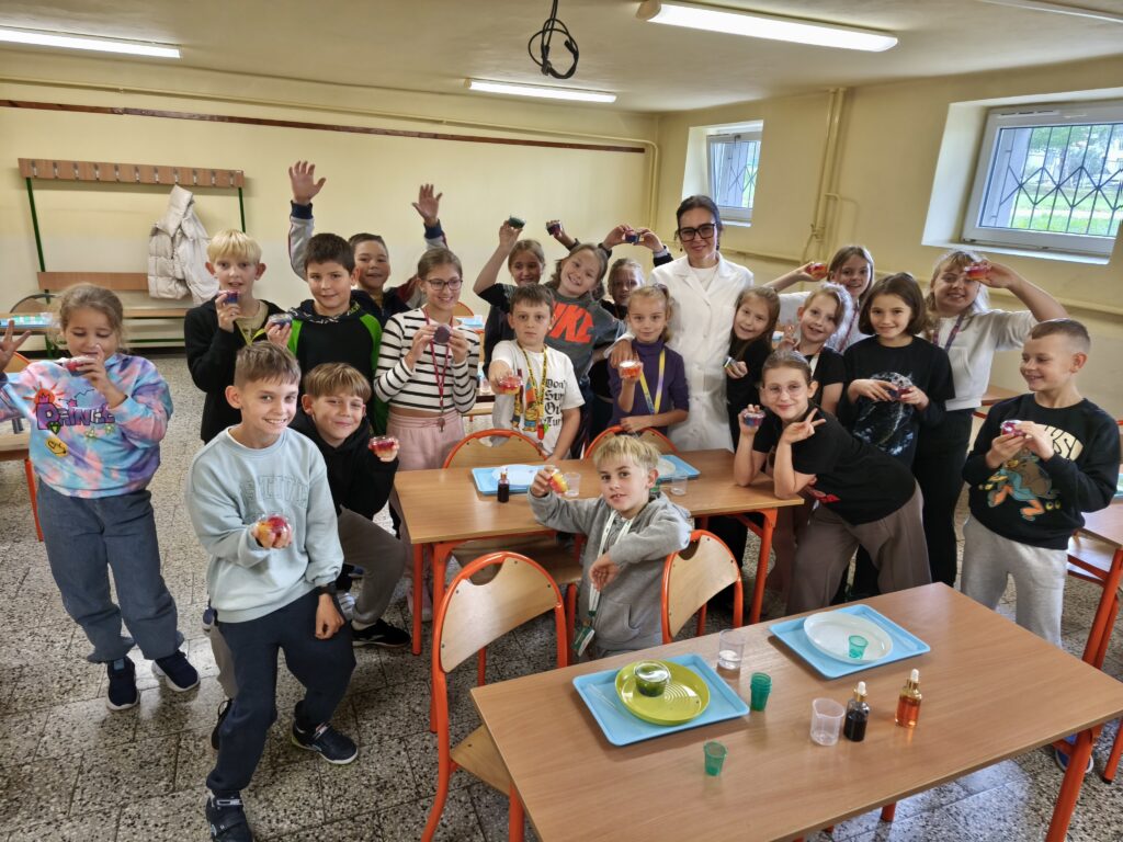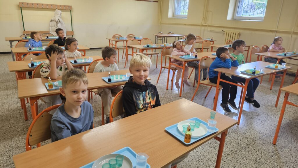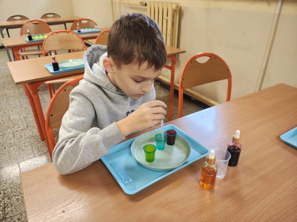 W dniu 8 października 2025 r. odbyły się warsztaty naukowe w ramach cyklu Laboratorium Małego Chemika, w których udział wzięli uczniowie klas I–III.