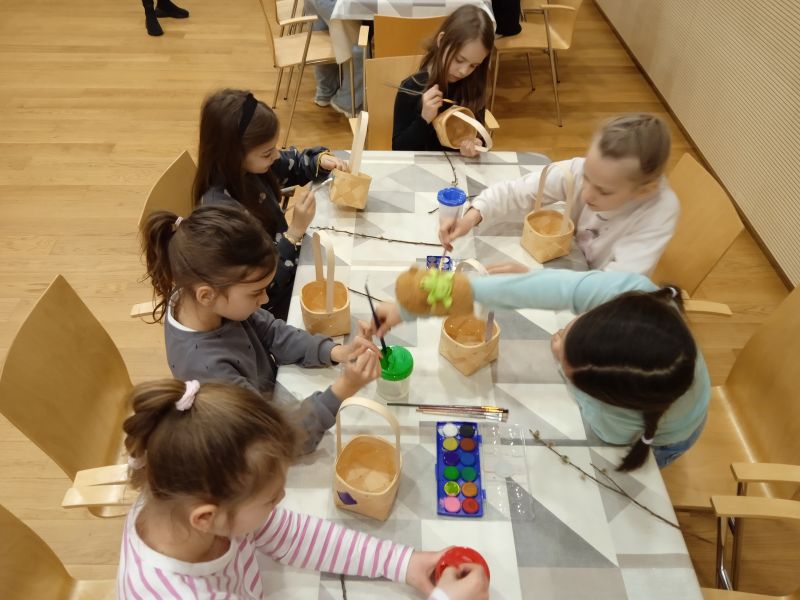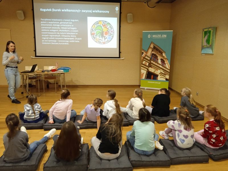 W ramach cyklu lekcji muzealnych grupa świetlicowa wyszła do Muzeum Miejskiego w Żorach. Na wstępie dziewczęta zostały oprowadzone po ekspozycji stałej, która dotyczy wyposażenia kuchni i tradycji śląskich, a następnie uczestniczyły w warsztatach plastycznych. Po wysłuchaniu informacji na temat zwyczajów wielkanocnych uczennice malowały koszyczki i ozdabiały je wstążkami i baziami. Z tak wykonanymi pracami wróciły do szkoły. Koszyczki mogą być wykorzystane do święcenia potraw.