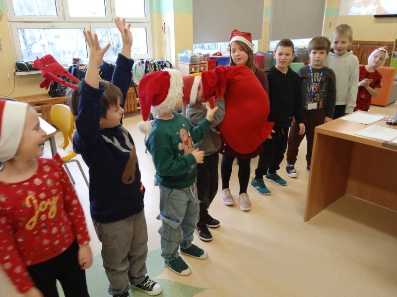 W okresie przygotowań do Świąt Bożego Narodzenia w świetlicy szkolnej uczniowie realizowali zadania z kalendarza adwentowego. Odkrywane były w poszczególne dni okienka, dzieci uczestniczyły w różnych zabawach. Była to: świąteczna gimnastyka, wykonywanie papierowych ozdób na choinkę i karaoke z kolędami i pastorałkami.